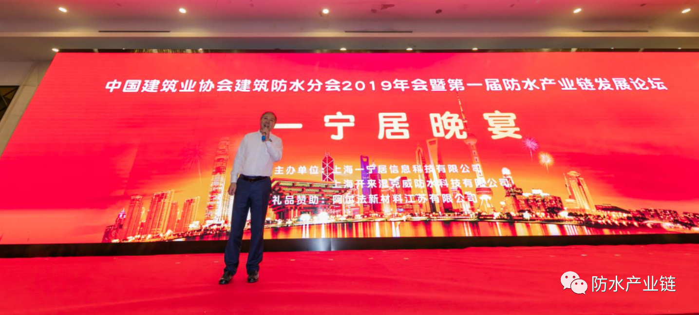 一寧居防水產業鏈平臺創始人倪貴全高工一寧居晚宴上致辭。