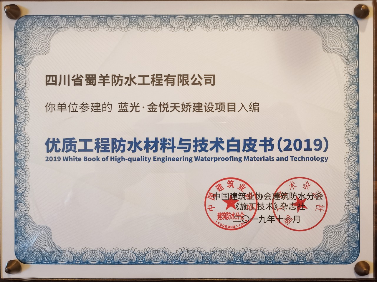 《藍光·金悅天驕》工程項目曾獲得2018年度"成都市優質工程(芙蓉杯)",本次入編《白皮書》,是對北新蜀羊在產品品質、施工技術與工程質量等方面的高度肯定。