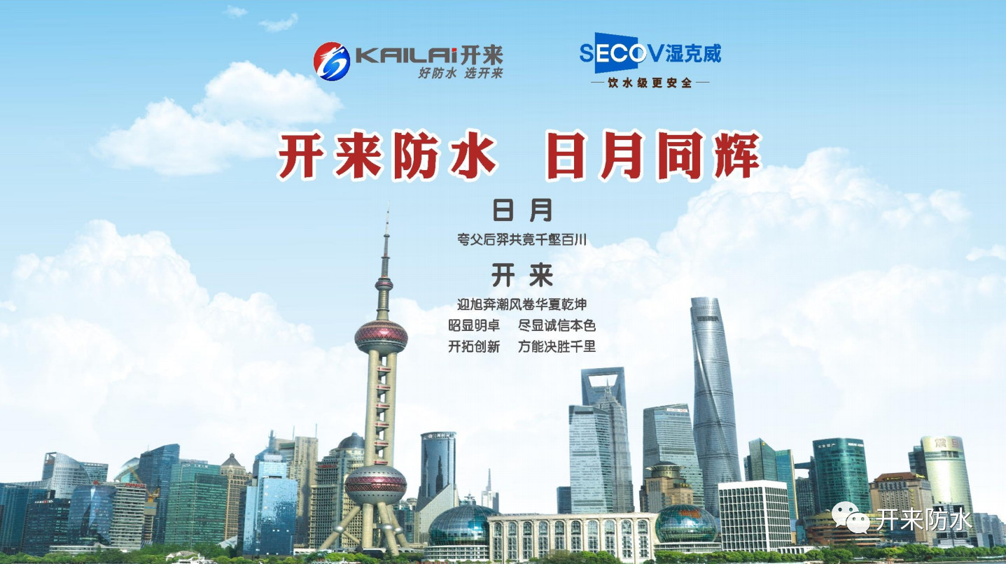 上海開(kāi)來(lái)濕克威防水,始建于上海1993年,擁有華東和華中兩大研發(fā)、生產(chǎn)基地,旗下有開(kāi)來(lái)、SECOV濕克威、樂(lè)活、一寧四大品牌,一級(jí)資質(zhì),網(wǎng)絡(luò)覆蓋600座城市,出口日本、俄羅斯、越南、柬埔寨、科威特、吉布提、香港、澳門(mén)等國(guó)家地區(qū)。我們以呵護(hù)人類(lèi)建筑安全為己任,通過(guò)“一個(gè)電話(huà)所有事情我來(lái)辦”和“360°品控,全程品質(zhì)可追溯”來(lái)踐行防水全程無(wú)憂(yōu)。