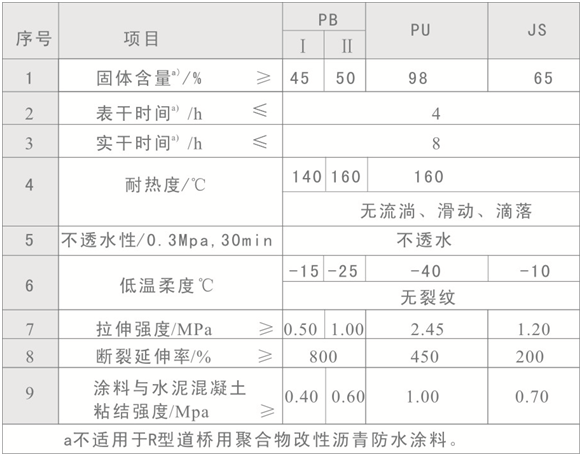 (3)道橋用聚合物改性瀝青防水涂料按性能分為Ⅰ、Ⅱ兩類。