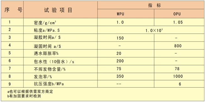 產品為單組分。是水溶性聚氨酯堵漏劑母液使用時加入30-40%。無水丙酮。使用效果與水溶性聚氨酯相同,由于材料中不含溶劑不易燃燒,便于安全運輸和保管。 |